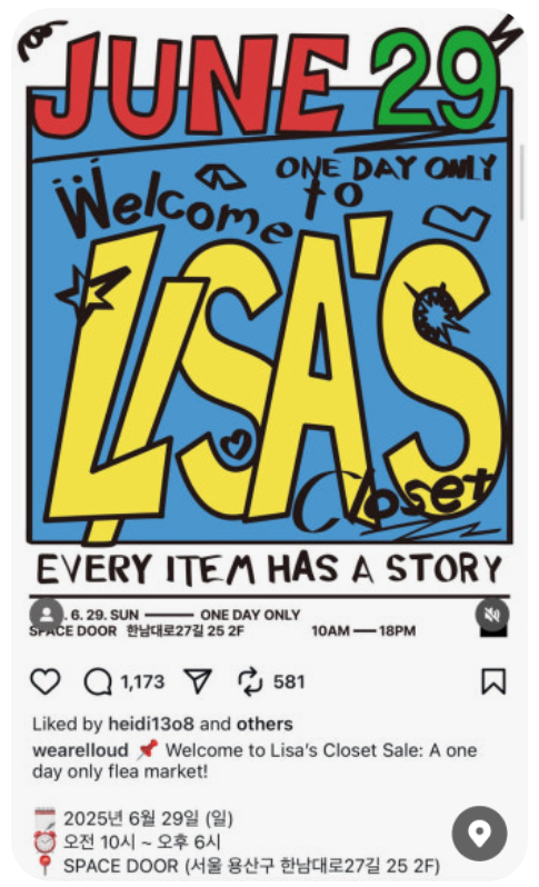 직접 판매하는 클로짓 세일 형태라고 합니다~ 와우~ 찐 리사의 옷이라니~~!!!
