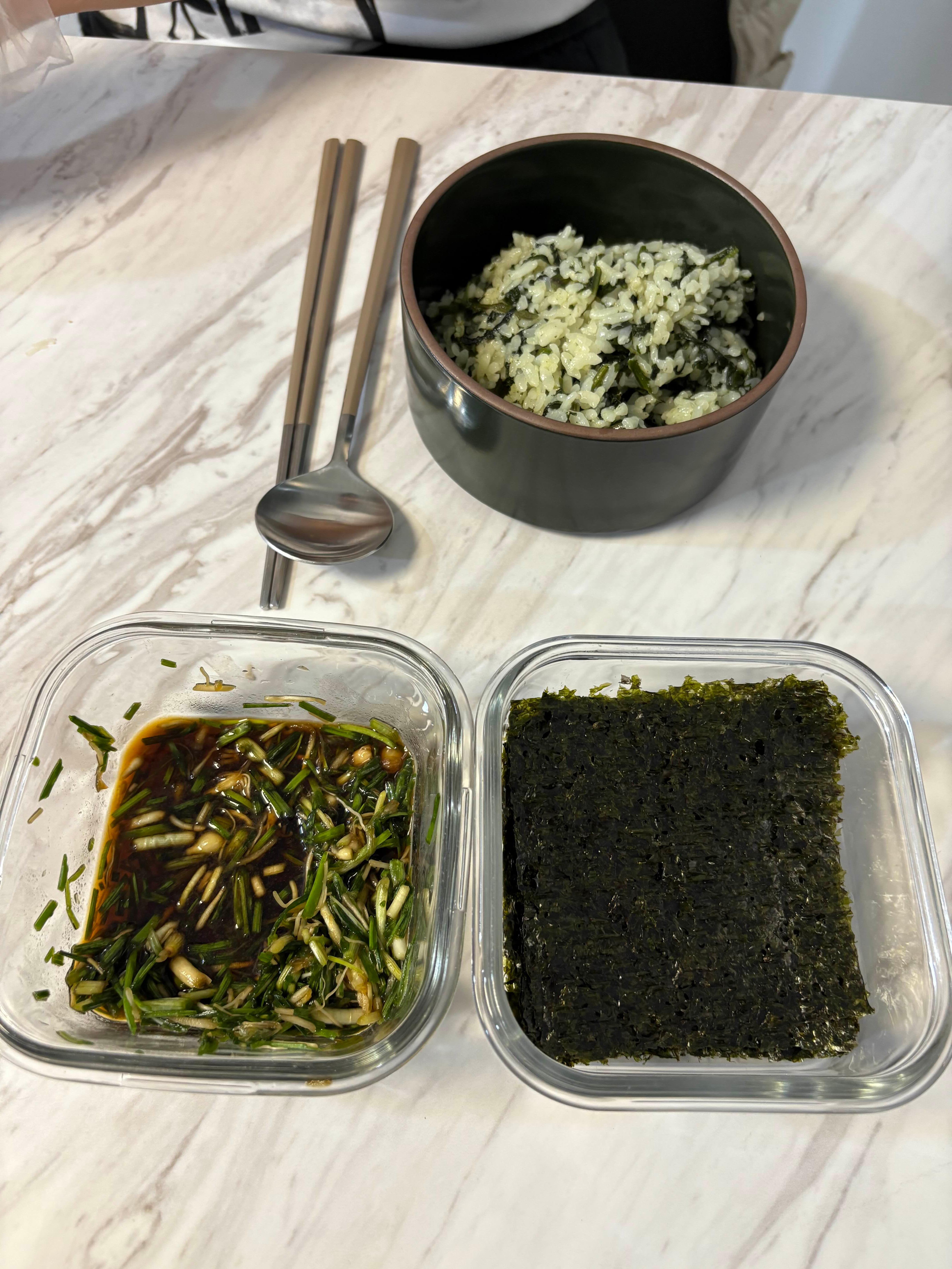 곤드래 밥 + 달래장 + 구운 김+(메인 메뉴) 랍스터찜!