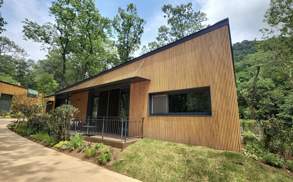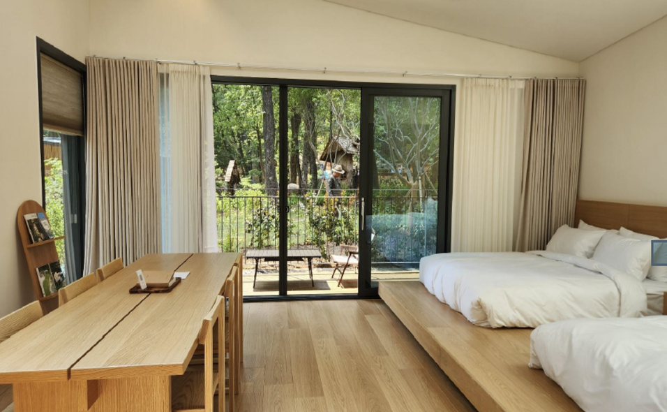 - 8개동 총 25실 / 본동 2인실(7평) , 개별동 2인실 or 4인실 or 6인실 -이중 4인실 트리하우스 구성 (10평)