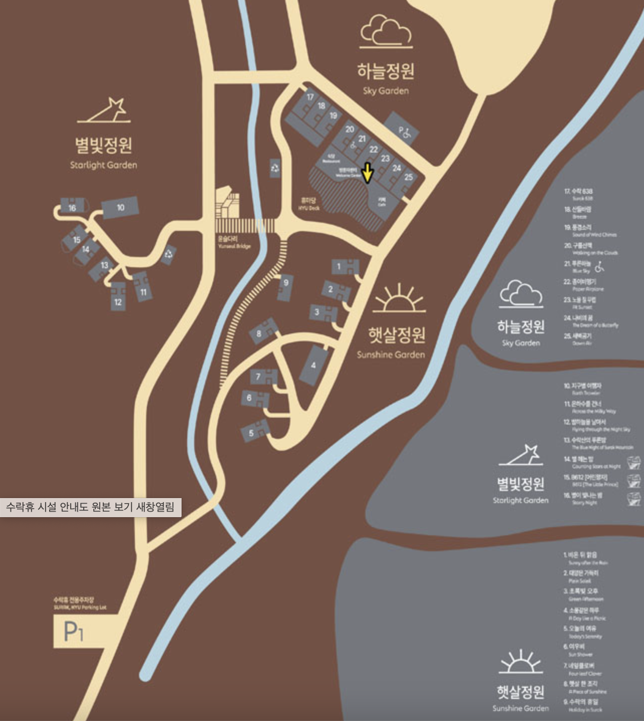 25객실(트리하우스 3동), 유아숲체험원, 휴 마당(불멍존), 무장애숲길, 식당&카페(씨즌 서울 by 홍신애)